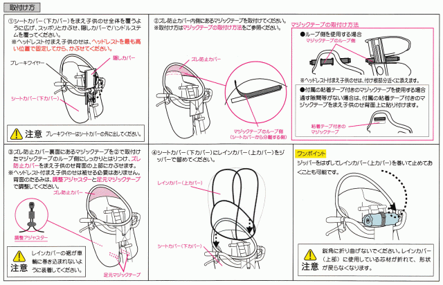 - ジップが2つあればやりやすい。毎回ぐるっと一周、、、 うちは前も園児を乗せていますが ある程度大きくなると足もでかいので足入れが引っかかります ogkフロントシートのカジュアルを使っていますが 背もたれと一体型は両面テープとのこと。 見当たらない、、、間違えて捨ててしまったのかすらわからず。とりあえずガムテでしのいでます ひっかけるところがあるフロントシートはしっかり安定すると思います ビニールもしっかりしてる フルオープンになって、つけっぱなしに出来るのが有り難い 子供も楽しそうです ありがとうございました!