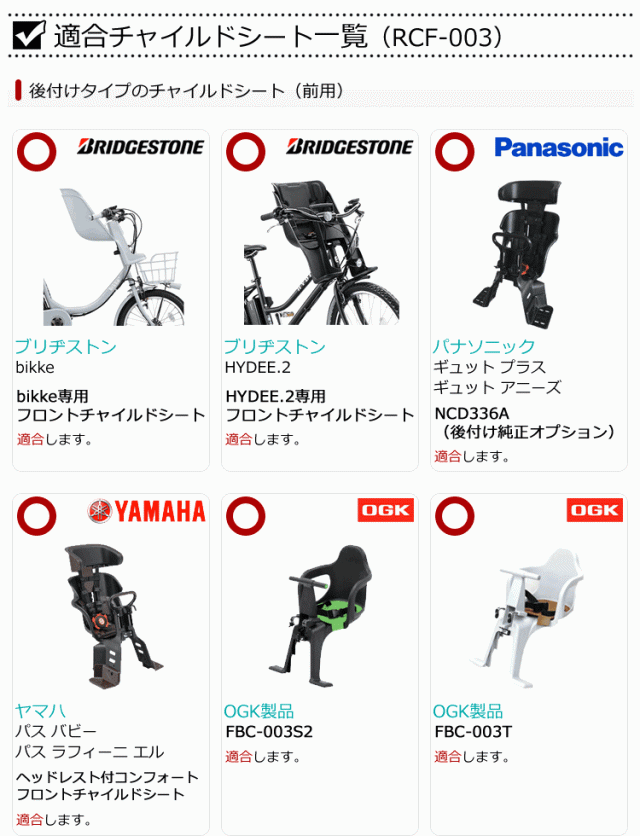 ・後付け(あと付け)タイプのチャイルドシート(OGK製FBCシリーズ)に対応