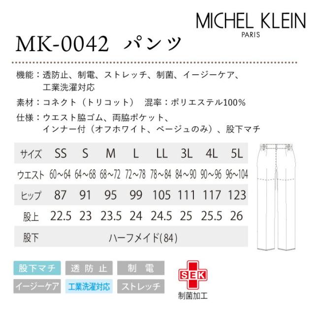 ミッシェルクラン レディースパンツ ストレッチ 透け防止 制菌加工 制電機能 工業洗濯対応 クリニック サロン 病院 美容部員 エステユニフォーム 作業ズボン 股下ハーフメイド MICHEL KLEIN チトセ 即日出荷 ct-mk0042