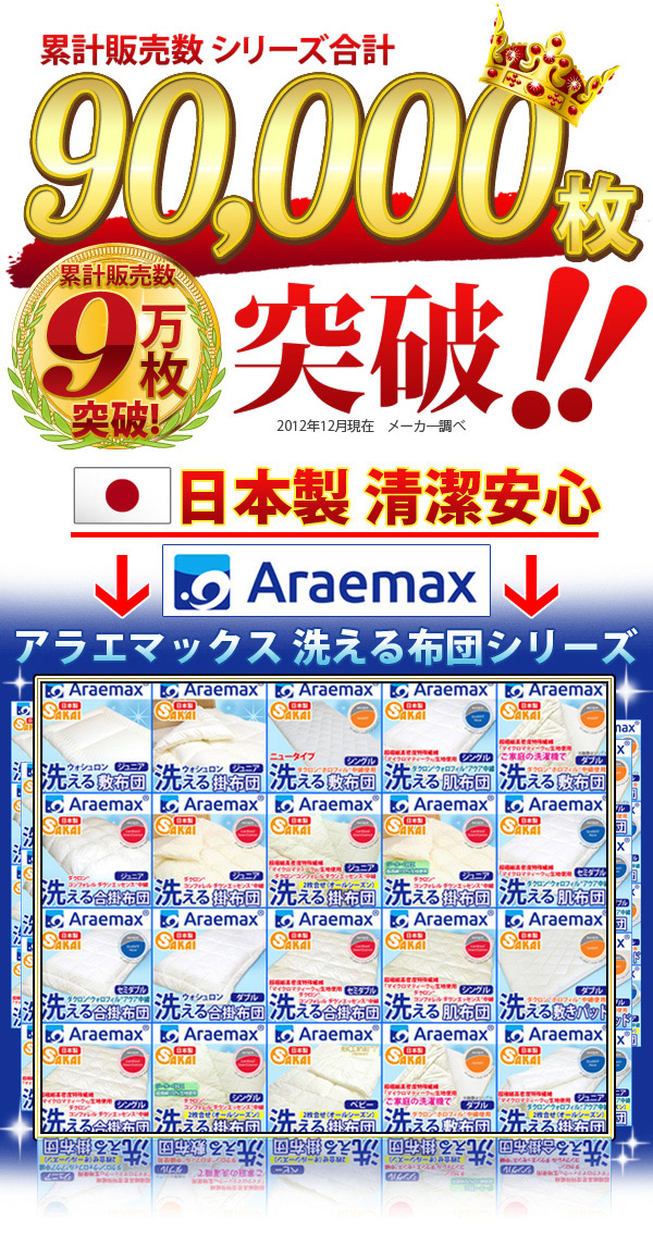 アラエマックスRは、清潔さと快適さを追求した、洗える布団ブランドです。