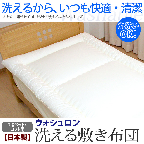 2段ベッド用・ロフトベッド用 95×195cm 洗える敷布団 テイジン ウォシュロン中綿使用