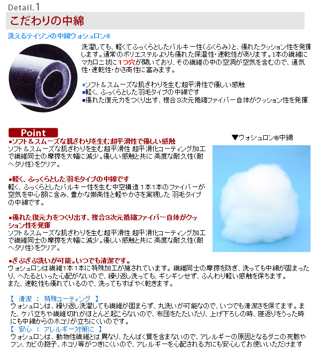 テイジン ウォシュロン(R)中綿使用