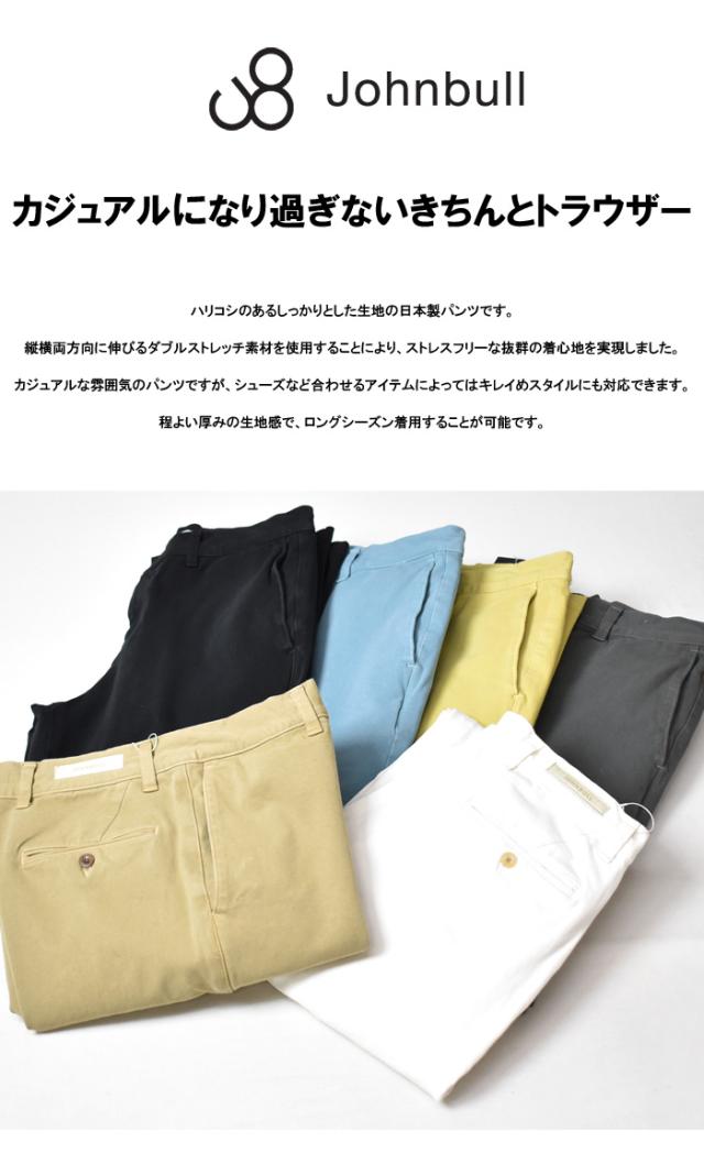 Johnbull ジョンブル ダブルストレッチ トラウザーパンツ 日本製 テーパード ストレッチ メンズ 送料無料 21489