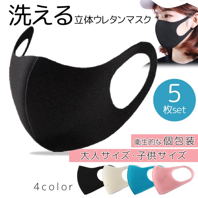 ウレタンマスク 立体 マスク 子供 白 ピンク 大きめ 小さめ 在庫あり 即納 5枚セット 洗える 個包装 男女兼用 大人 ブラック 小顔効果