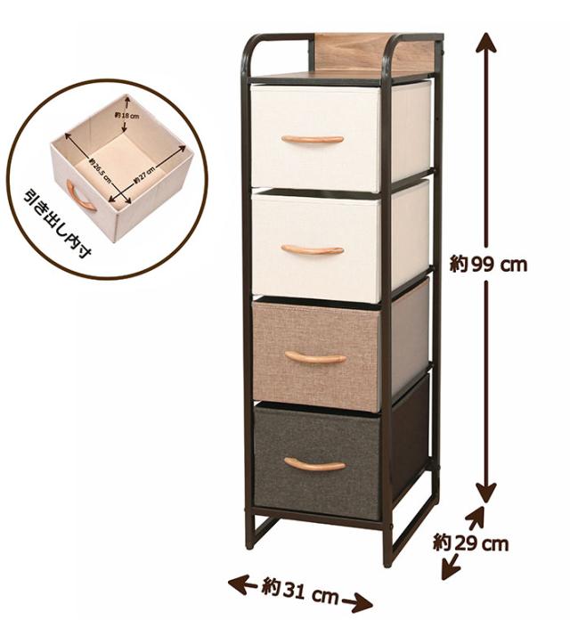 収納ラック 布製 チェスト 布 4段 幅31 収納ボックス おしゃれ ファブリック 天然木 木目 スチール 北欧 収納 引き出し 幅31cm 奥行29cm 高さ99cm 布 収納BOX 収納ケース チェスト 4段 ランドリー バスケット ボックス 小物収納 衣装収納
