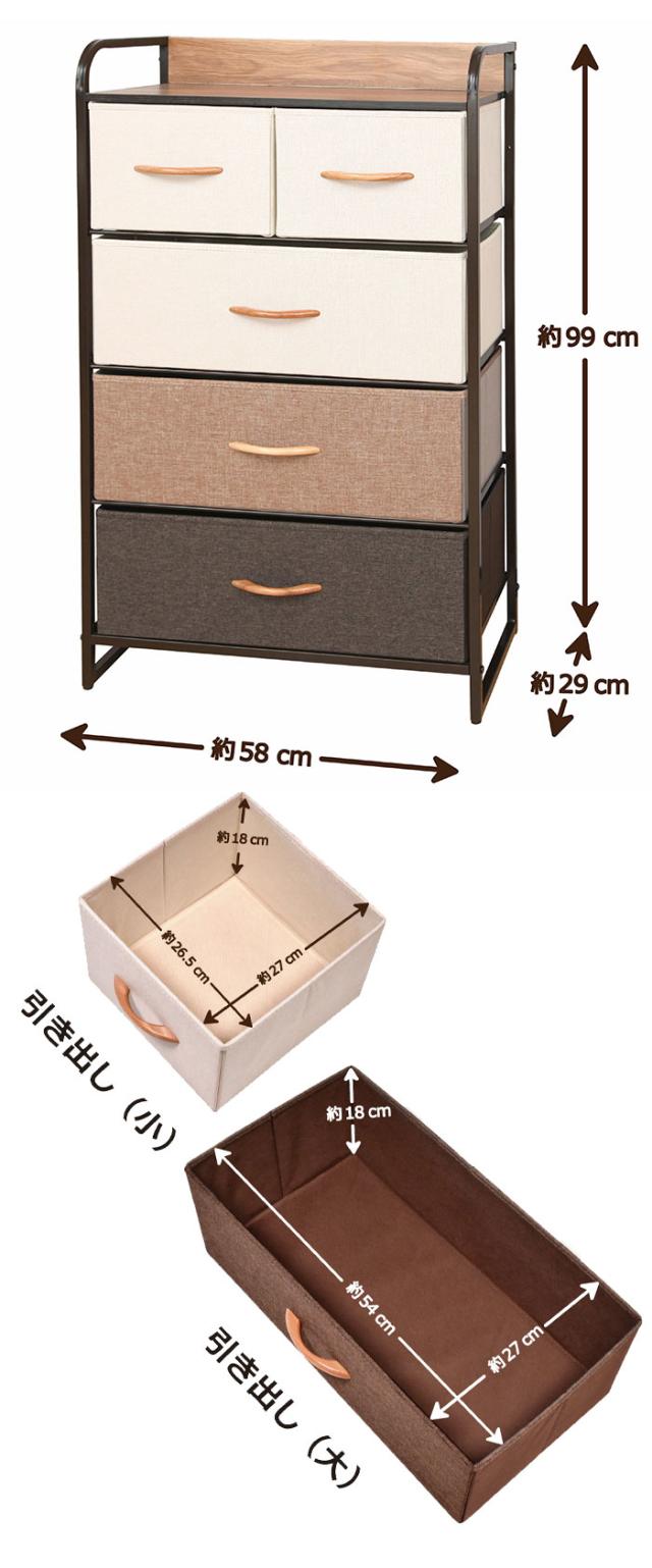 収納ラック 布製 チェスト 布 4段 幅58 収納ボックス おしゃれ ファブリック 天然木 木目 スチール 北欧 収納 引き出し 幅58cm 奥行29cm 高さ99cm 布 収納BOX 収納ケース チェスト 4段 ランドリー バスケット ボックス 小物収納 衣装収納