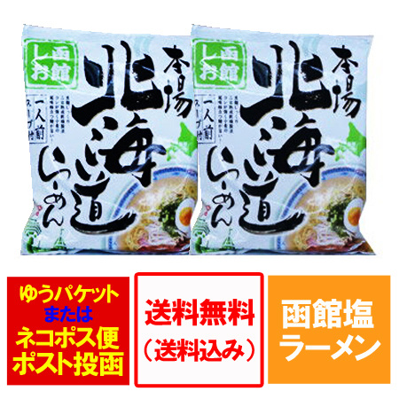 ラーメン 送料無料 函館 塩ラーメン 袋麺 北海道 函館塩ラーメン 1袋×2個 ラーメン スープ付 本場 函館 ラーメン 価格 598円 はこだて らーめん 乾麺 インスタント麺