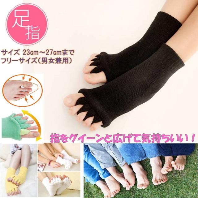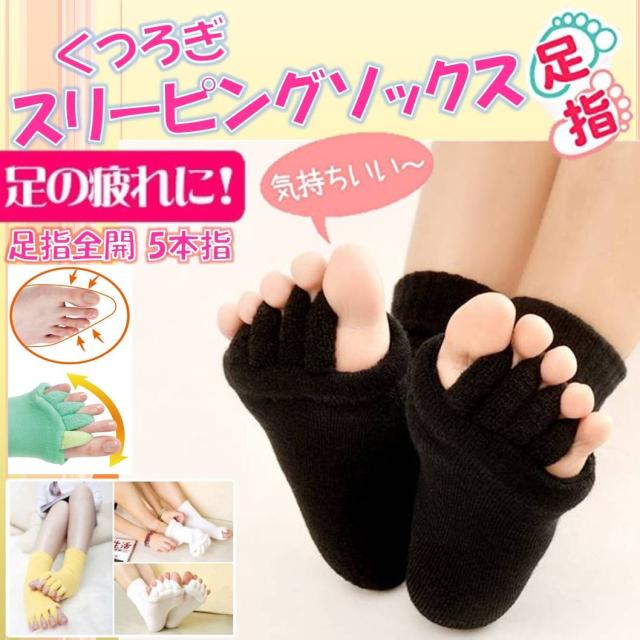 送料無料 ブラック くつろぎ スリーピング ソックス 足指 全開 5本指 血行 脚痩せ 足指 ルーム 寝る時 睡眠 むくみ 解消 外反母趾 矯正 靴下
