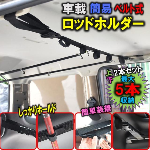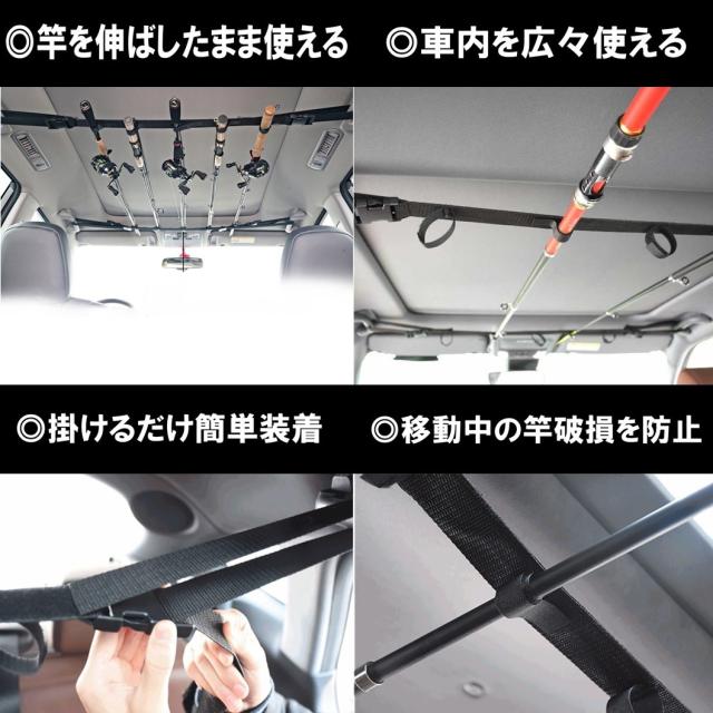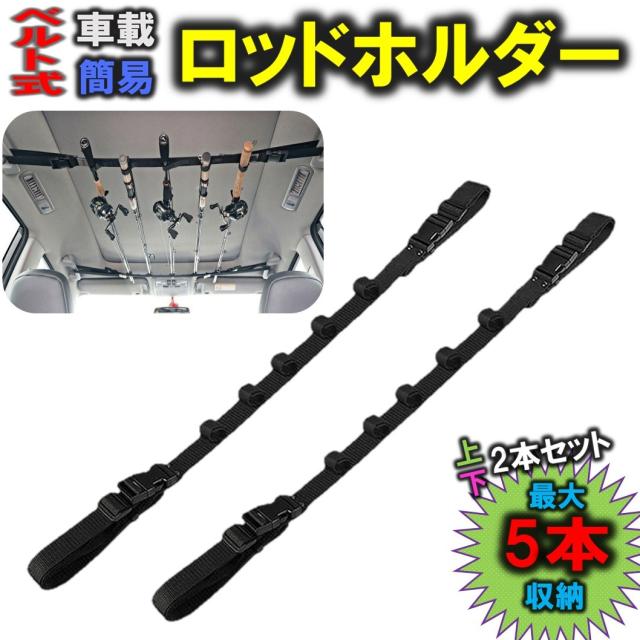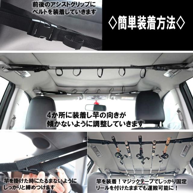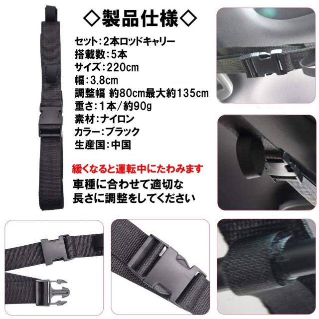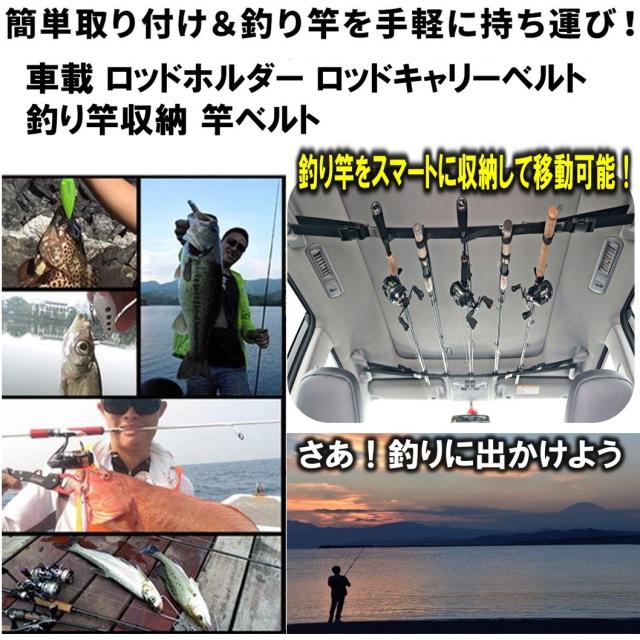送料無料 車載 ロッドホルダー ロッド キャリーベルト 釣り竿収納 竿ベルト ロッド 車載アイテム 3列シート 竿車内天井 つり竿 最大5本収納 簡単 設置