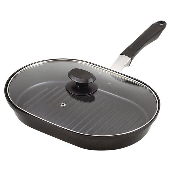 パール金属 HB-4919 グリルファン ふっ素加工 ガラス蓋付 IH対応 ワイドパンミニ