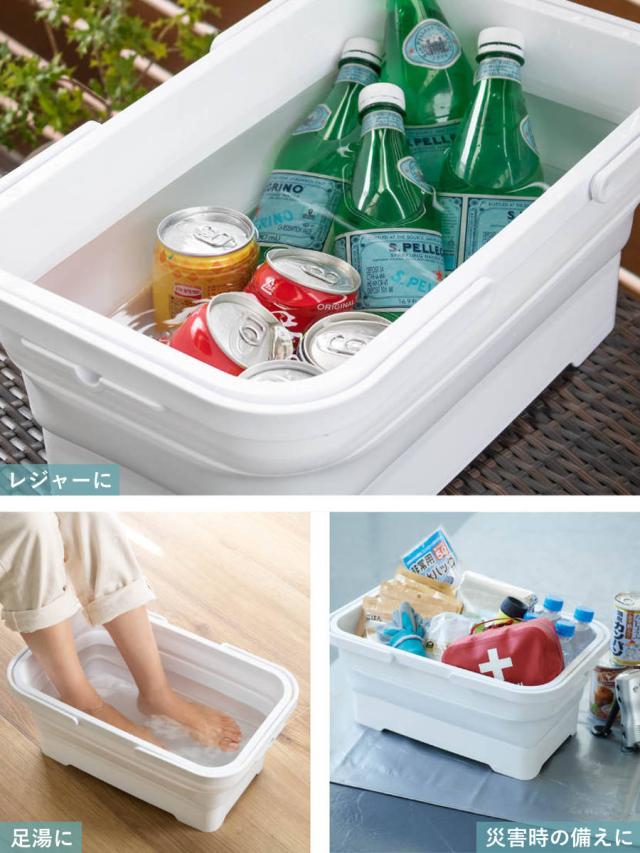 普段の疲れを癒してくれる足湯に使ったり、レジャーの際にジュースを冷やす用の桶としても使えます。車にひとつ積んでおくと災害時にも使えるのでおすすめです。