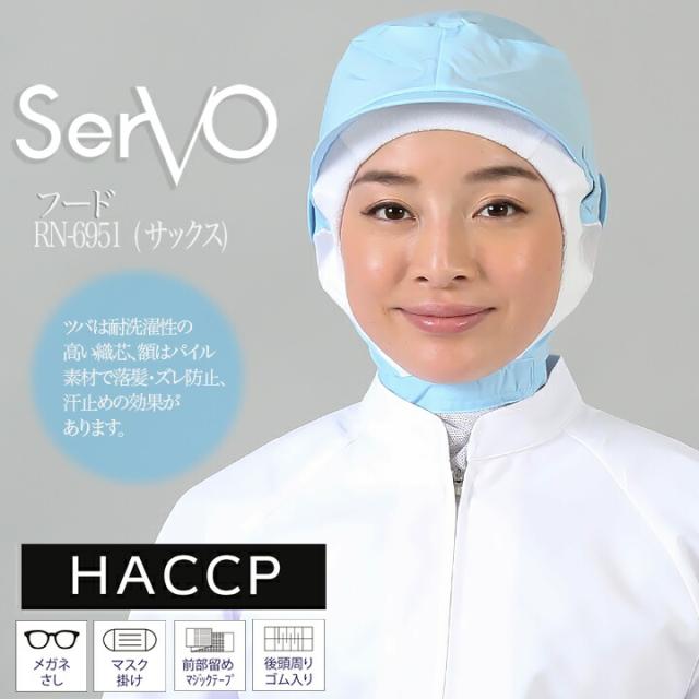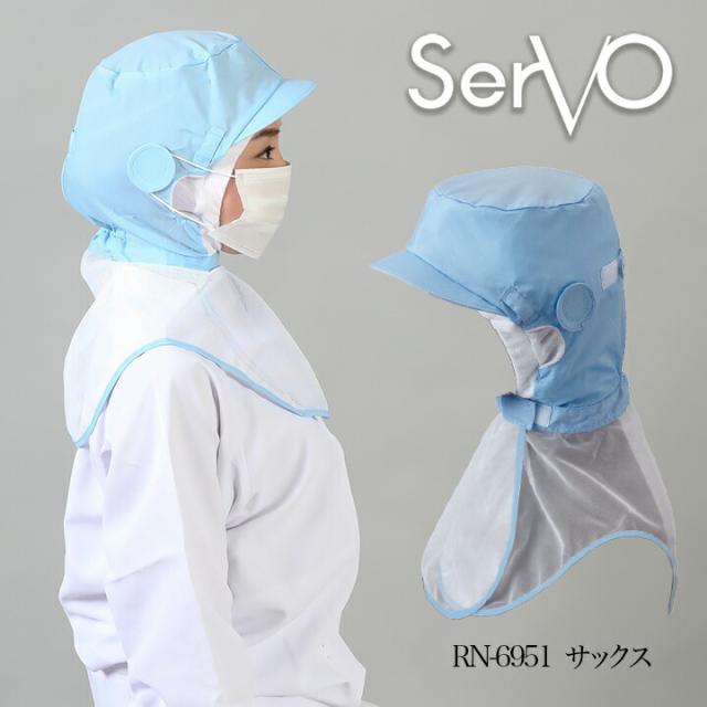 衛生帽子 サーヴォ RN6951 食品工場帽子 サックス 男女兼用 メッシュ ケープ付き HACCP ハサップ 工場白衣 フード 調理 梱包 検品 サービス業 制服 レストラン ユニフォーム sarvo【メール便送料無料】