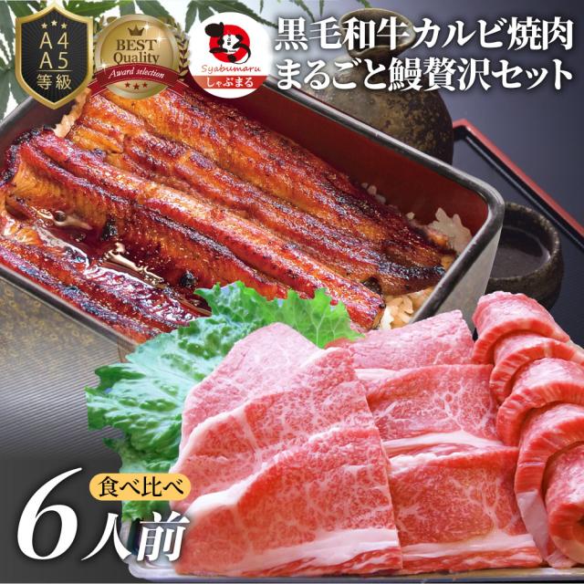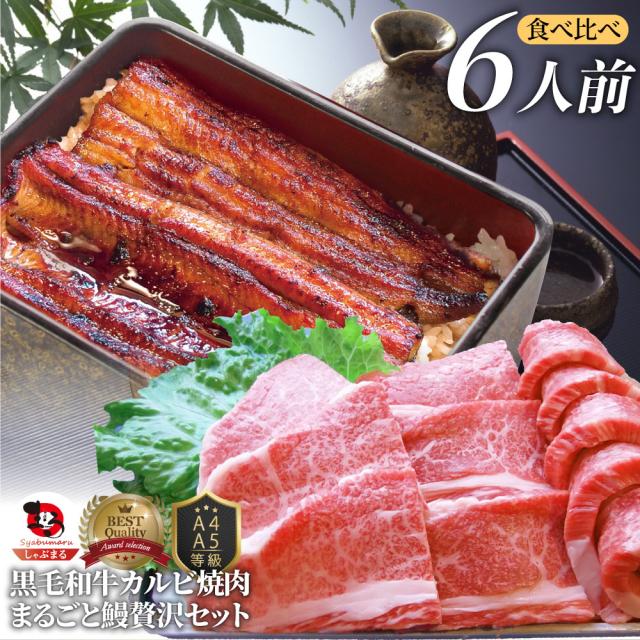 黒毛和牛 & まるごと鰻 セット 6人前 肉 ギフト プレゼント 黒毛和牛 カルビ 焼肉 ( A4 〜 A5等級 ) 焼肉のタレ プレゼント 牛肉 送料無料 贅沢 うなぎ 黒毛 和牛 国産 祝い お祝い返し 記念 通販 お取り寄せ グルメ 誕生日 牛 内祝 *当日発送 お肉の しゃぶまる