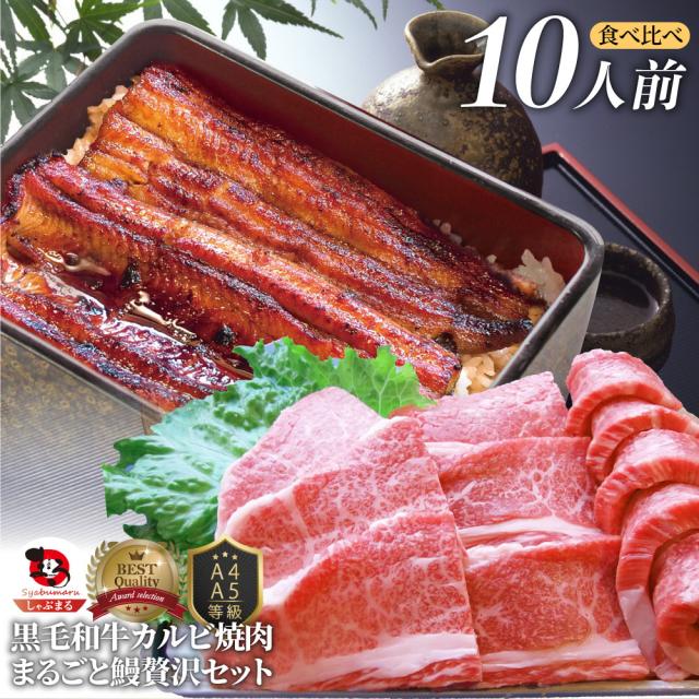 黒毛和牛 & まるごと鰻 セット 10人前 肉 ギフト プレゼント 黒毛和牛 カルビ 焼肉 ( A4 〜 A5等級 ) 焼肉のタレ プレゼント 牛肉 送料無料 贅沢 うなぎ 黒毛 和牛 国産 祝い お祝い返し 記念 通販 お取り寄せ グルメ 誕生日 牛 内祝 *当日発送 お肉の しゃぶまる