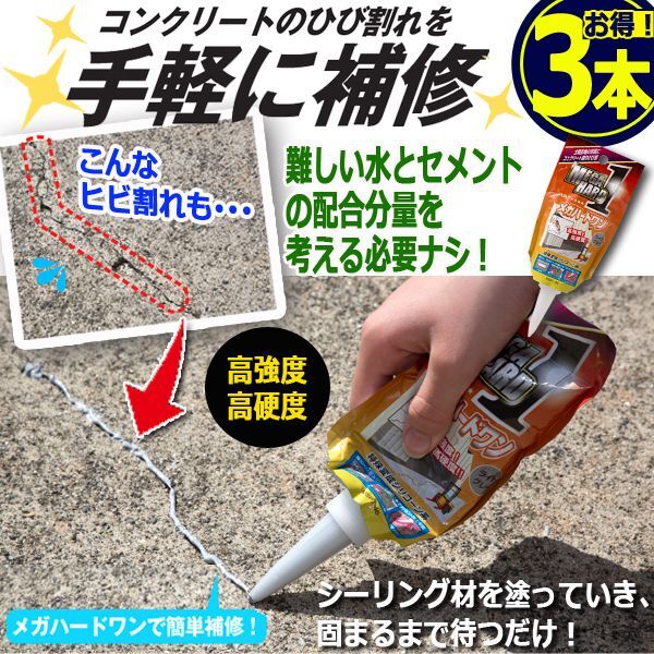 コンクリート補修材!メガハードワン[3本] (シーリング DIY 崩壊 シリコーン 接着剤 施工 硬化 ライトグレー 塗るだけ ひび割れ)