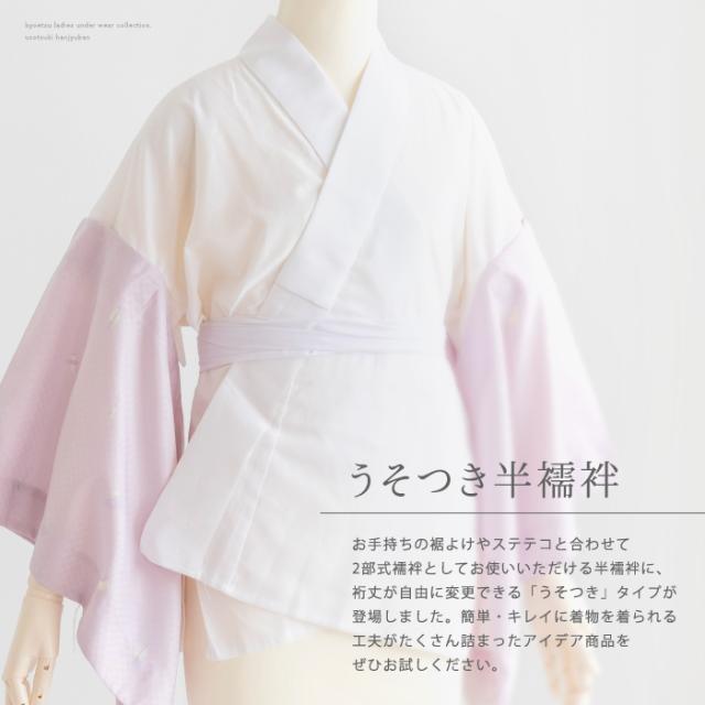 半襦袢タイプのうそつき襦袢です。お手持ちの裾よけやステテコと合わせてお使いください。