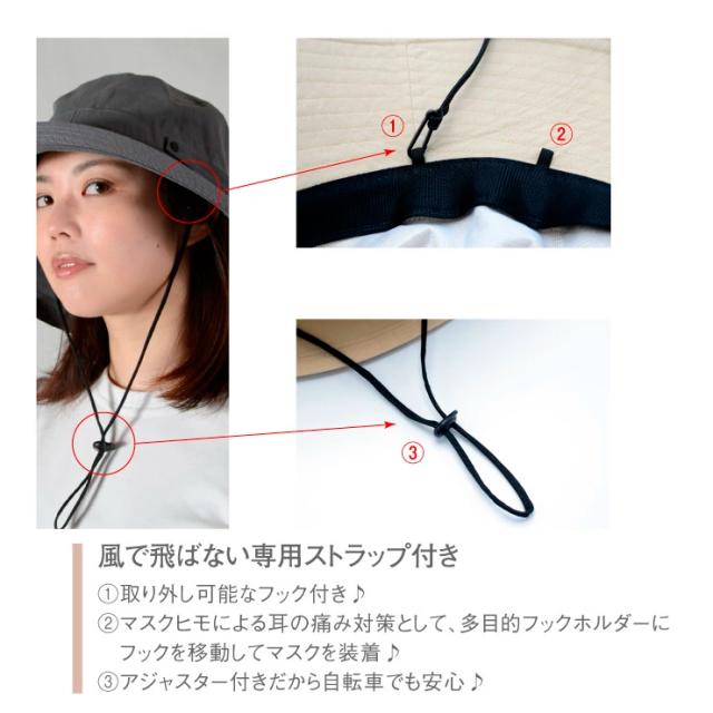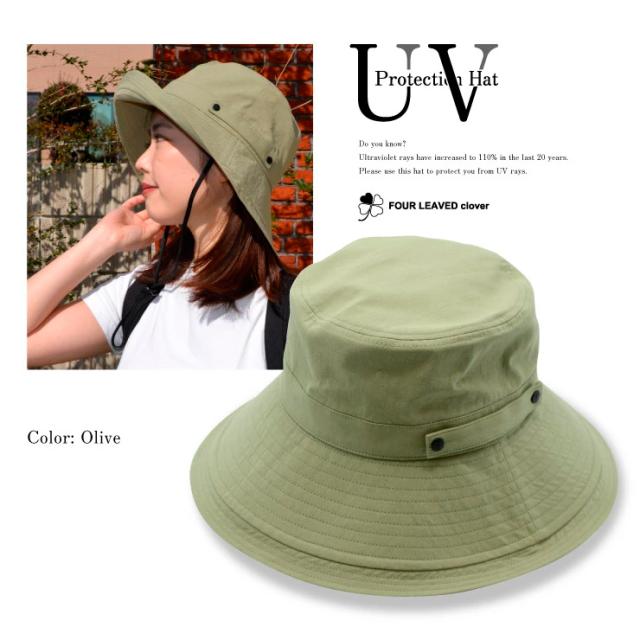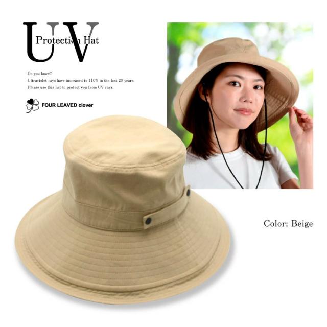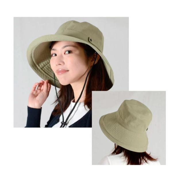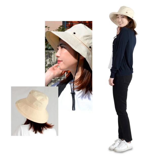 UV 帽子 レディース ウォッシュ加工 紫外線 100% カット 紐付き つば広 折りたたみ 大きいサイズ サイズ調整可能 おしゃれ 可愛い 春 夏 サファリハット 日よけ UVケア UVハット UVカット 自転車 飛ばない あご紐つき 送料無料