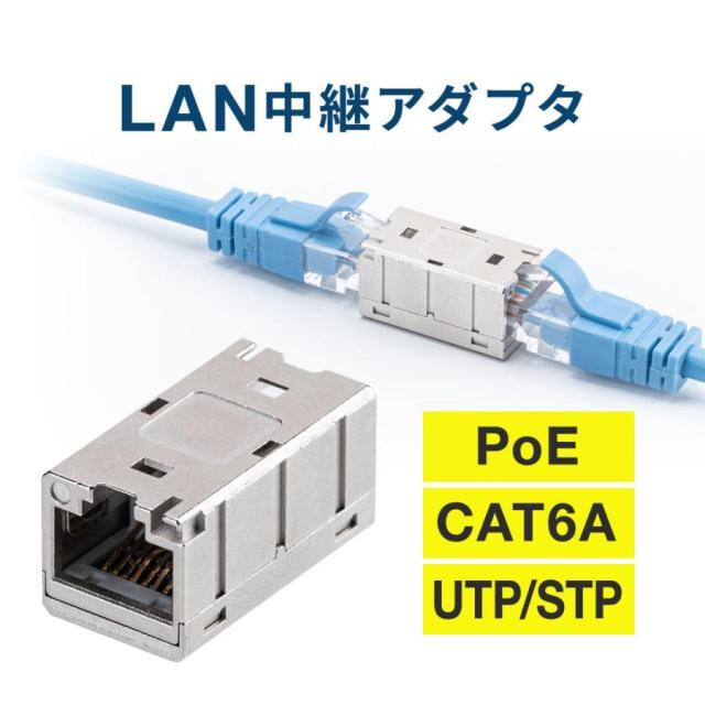 LANケーブル 中継アダプタ RJ-45 CAT6A PoE対応 STP UTP[500-LAN-EX6AS]