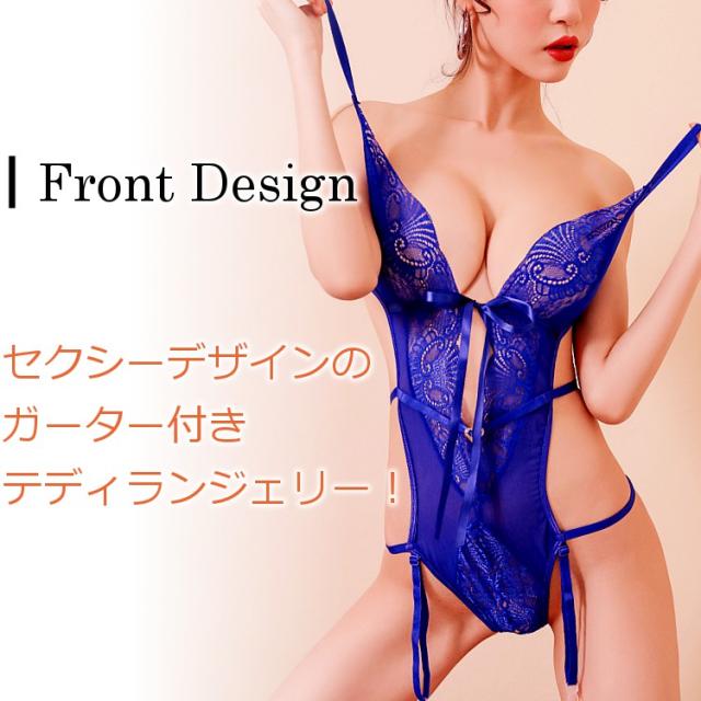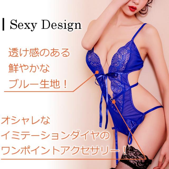 セクシー ランジェリー ガーターベルト テディ シースルー 下着 レディース インナー 可愛い ルームウェア ブルー 青 送料無料 ネコポス便