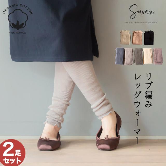【2足セット】オーガニックコットン リブ編み レッグウォーマー ロング レディース メンズ 春夏 夏用 睡眠 薄手 締め付けない 温める 日本製 ゆったり 冷え サポーター あったかい ふくらはぎ おしゃれ かわいい 妊婦 寝る用 レギンス風