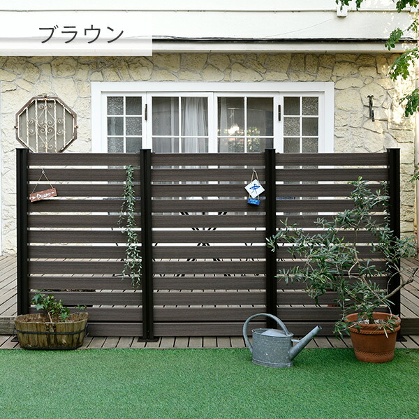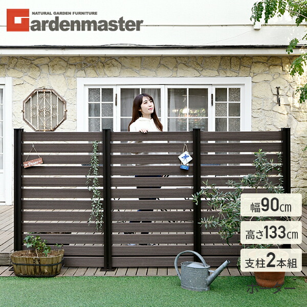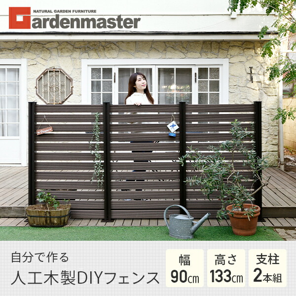 フェンス 目隠し 人工木 ボーダー (幅90cm 高さ133cm) アルミ支柱 2本 KMFS-133+WPC1X4-8BR*12 ブラウン/ナチュラル ボーダーフェンス 目隠しフェンス 屋外 おしゃれ DIY 山善 YAMAZEN ガーデンマスター 【送料無料】