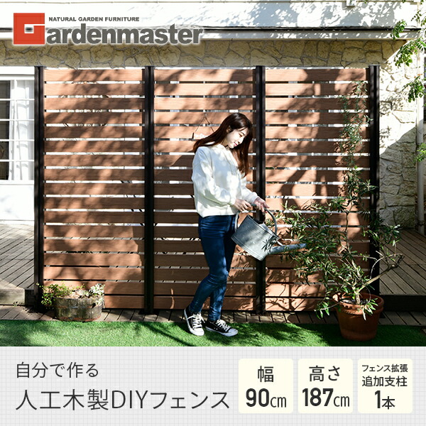 フェンス 目隠し 人工木 ボーダー (幅90cm 高さ187cm) フェンス拡張セット アルミ支柱追加用 1本 KMFS-1871+WPC1X4-8BR*17 ブラウン/ナチュラル ボーダーフェンス 目隠しフェンス 屋外 おしゃれ DIY 山善 YAMAZEN ガーデンマスター 【送料無料】