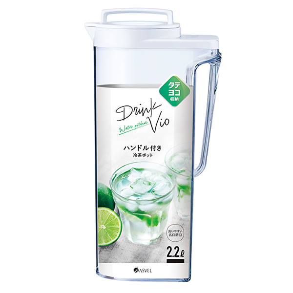 麦茶ポット ドリンク・ビオ 2.2L ホワイト D-222 | 横置き 洗いやすい 冷水筒 麦茶入れ ピッチャー ジャグ 広口 日本製 水差し タテヨコ置ける 約2L