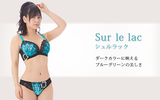 ダークカラーに映えるブルーグリーンの美しさが印象的なランジェリー。