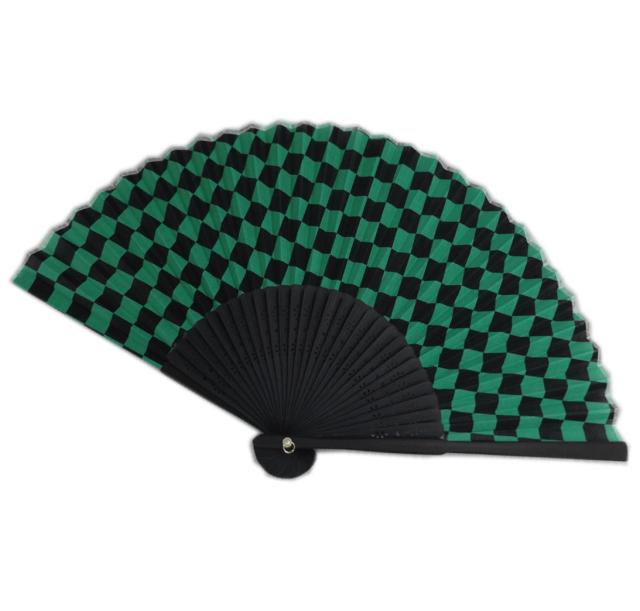 扇子 メンズ 男性 綿 緑黒市松 きめつ 浴衣 着物 和柄 ゆかた きもの 粋 男物 紳士用