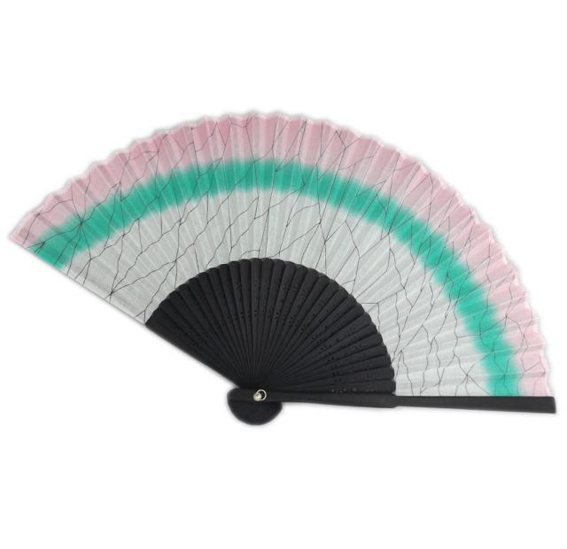扇子 女性用 綿 白グレー緑薄ピンク蝶の羽紋様 きめつ 浴衣 着物 和柄 ゆかた きもの 粋 レディース