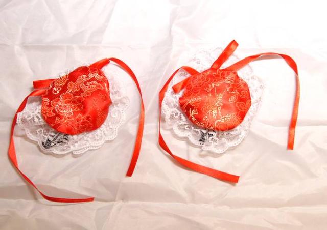 サテンお団子 髪飾りカバー(レース、ヘアクリップ付き) 2個1セット 赤色【種類=4色】