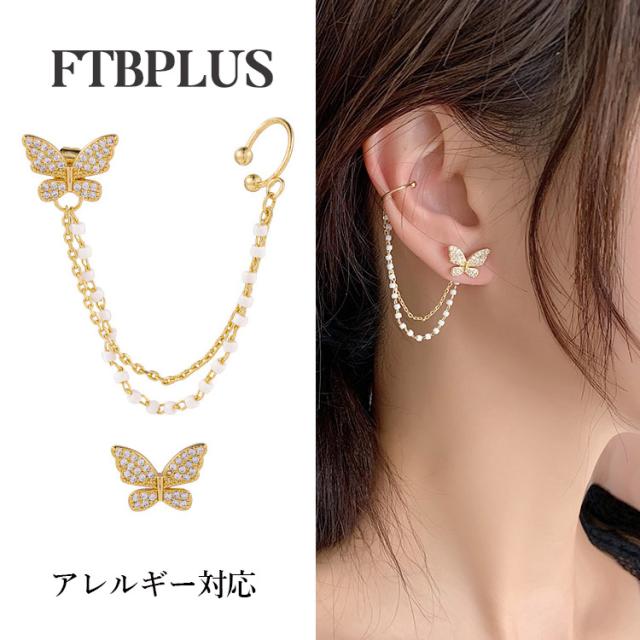 ピアス 18金 仕上げ 揺れる 蝶々 タッセル 韓国ファッション アレルギー対応 ポイント消化 誕生日 母の日 プレゼント