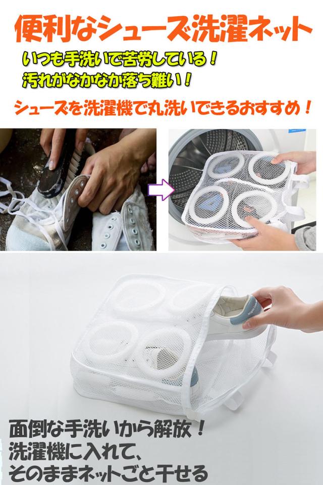 【靴を洗濯機で簡単丸洗い】面倒な靴洗いが、ご自宅の洗濯機で簡単に! ご使用方法は、靴を洗濯ネットに入れていつも使用している洗濯機に洗剤と 一緒に入れるだけ。お子さんの上履きや汚れやすい靴に、毎日の忙しい家事の時間を節約することができます。スリッパなどの室内履きにも使用して頂けます。【クッション構造で靴と洗濯機を傷つけない】側面や背面のクッションで 靴を洗濯機回転時の衝撃から守ります。洗濯機の内面や他の衣類との摩擦を防ぎ 洗濯時の騒音防止にもなります。また、左右の靴の間の仕切りで靴同士がぶつかり 傷つくこともありません。
