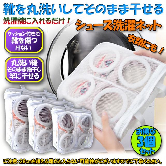シューズ洗濯ネット 3点セット シューズ用 洗濯ネット 靴丸洗い シューズ ランドリーネット 靴用 スニーカー サンダル 上履き スリッパ 上靴 洗濯後そのまま干せる ホワイト そのまま干せます 型崩れ防止