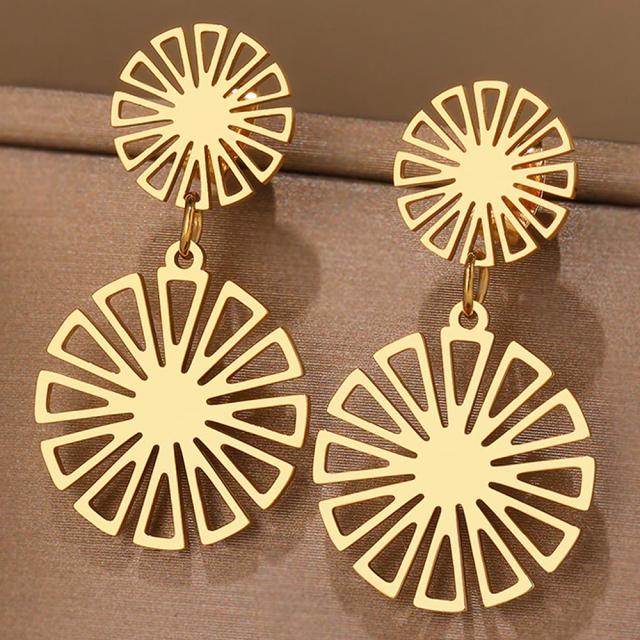 優雅に揺れる金色ゴールドのチャームが上品なコーデに決まるステンピアス。