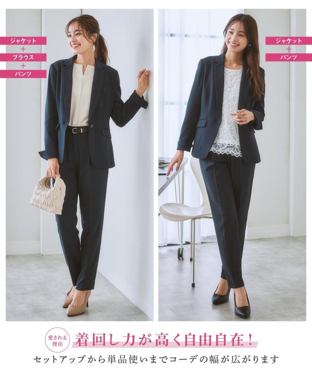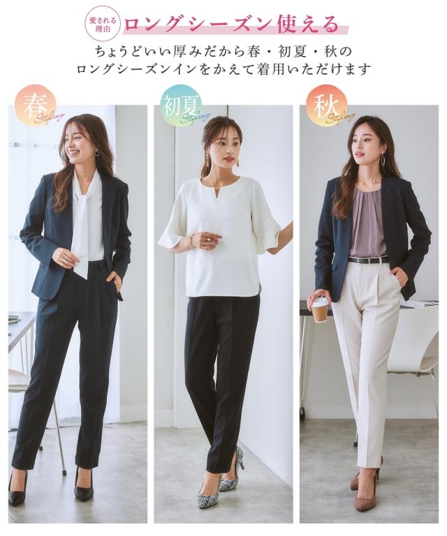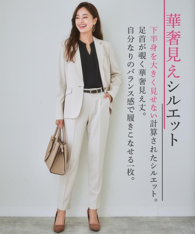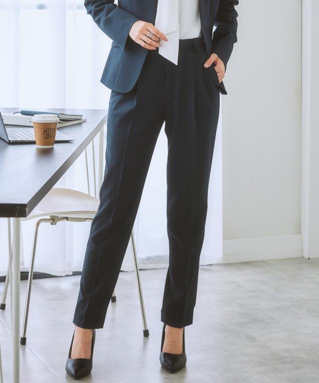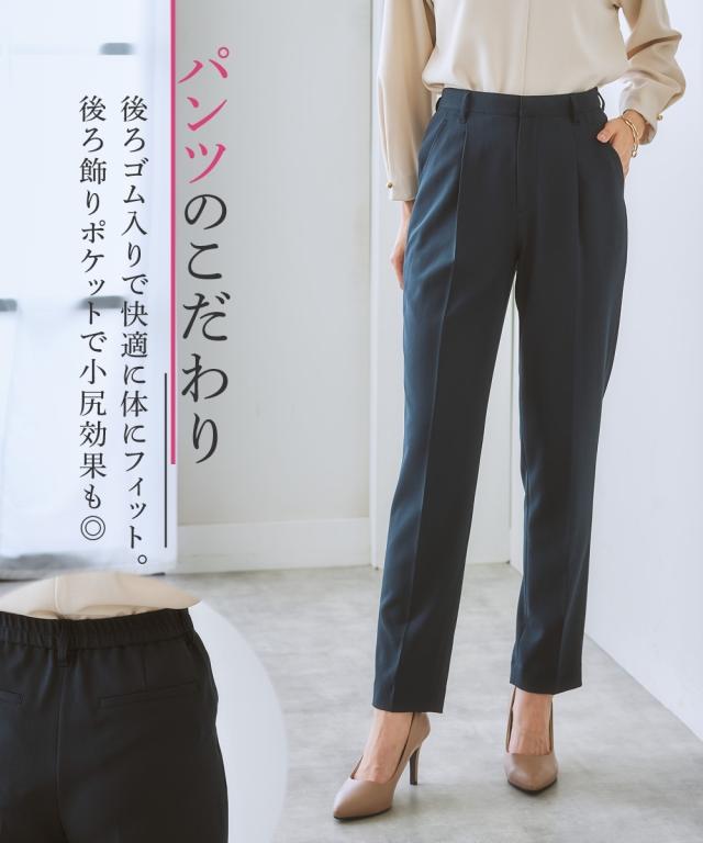 【レディーススーツ】セットアップ対応9分丈テーパードパンツ(上下別売・すごく伸びる多機能変り織リスピィシリーズ)(パターン改良Ver)