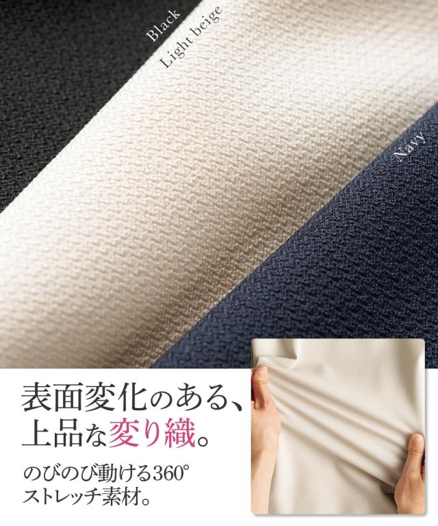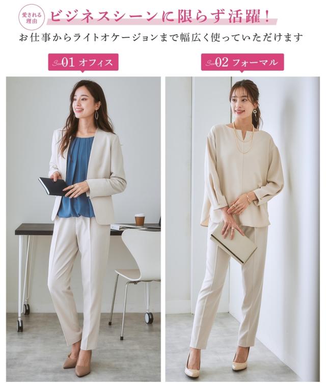 [keyword] レディース ファッション 女性 大きいサイズ ぽっちゃり ふくよか プラスサイズ ラージ 標準サイズ 普通サイズ ゆったりサイズ 防しわ アイロン しわになりにくい おでかけ 洗濯機洗いOK 洗濯 洗える マシンウォッシャブル UVカット UV対策 紫外線対策 日差し対策 夏 外出 [comment] ☆人気の商品がアップデートしてパターンを見直しした新設計サイズ☆!「よりきれいに見える」を追求◆大人気の多機能リスピィ変り織シリーズ・テーパードパンツが進化!・快適機能が満載で大人気の多機能素材”RISPY(R)”の大人上品な変り織シリーズ。・上品で主張しすぎない変り織なので、スーツとしては勿論単品使いもしやすい無地ライクで、 こなれた今どきのおしゃれセットアップをお楽しみいただけます。・毎日の通勤着としての着心地にもこだわり、360°ストレッチ、吸汗速乾、接触冷感、UVカット、防しわ等、機能性も充実。・こちらの変り織リスピィシリーズは、お好みに応じて自由にデザインとサイズをセレクトいただけます。・初秋から夏までロングシーズン、セットアップから単品使いは勿論、 お仕事からライトオケージョンまで着こなしの幅の広さもお楽しみください。