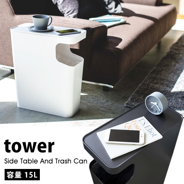 タワー ゴミ箱 テーブル おしゃれ 北欧 ダストボックス & サイドテーブル tower ゴミ袋が見えない ダストBOX 白 黒 ホワイト ブラック 山崎実業