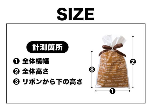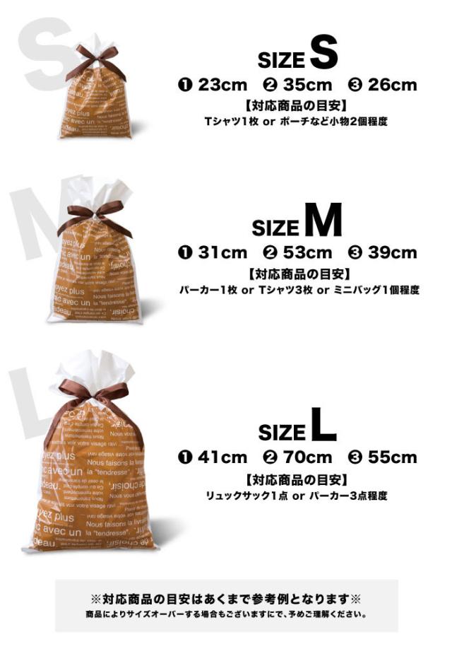 ・ご注文商品の大きさに合わせて、ラッピング袋のサイズを選ばせて頂きます。サイズの指定はできませんので、予めご了承ください。