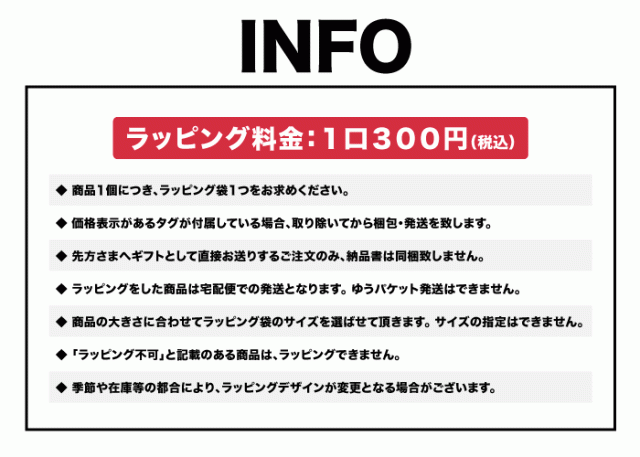 ・「ラッピング不可」と記載のある商品、またはラッピング梱包Lサイズ数値以上の商品はラッピングできませんのでご注意ください。
