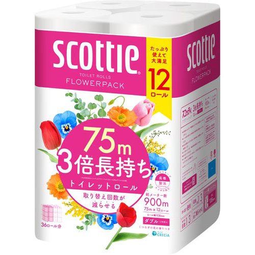 スコッティ フラワーパック 3倍長持ち トイレットペーパー ダブル(75m×12ロール)[トイレットペーパー ダブル]
