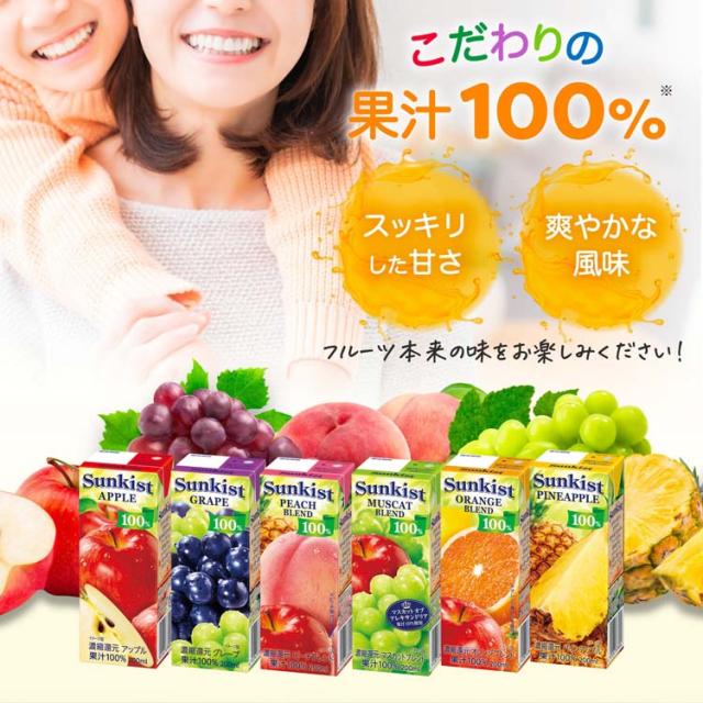 ●果汁ブランドのサンキストが提供する、100%果汁由来のフレッシュな味わいが手軽に楽しめるフルーツジュース。