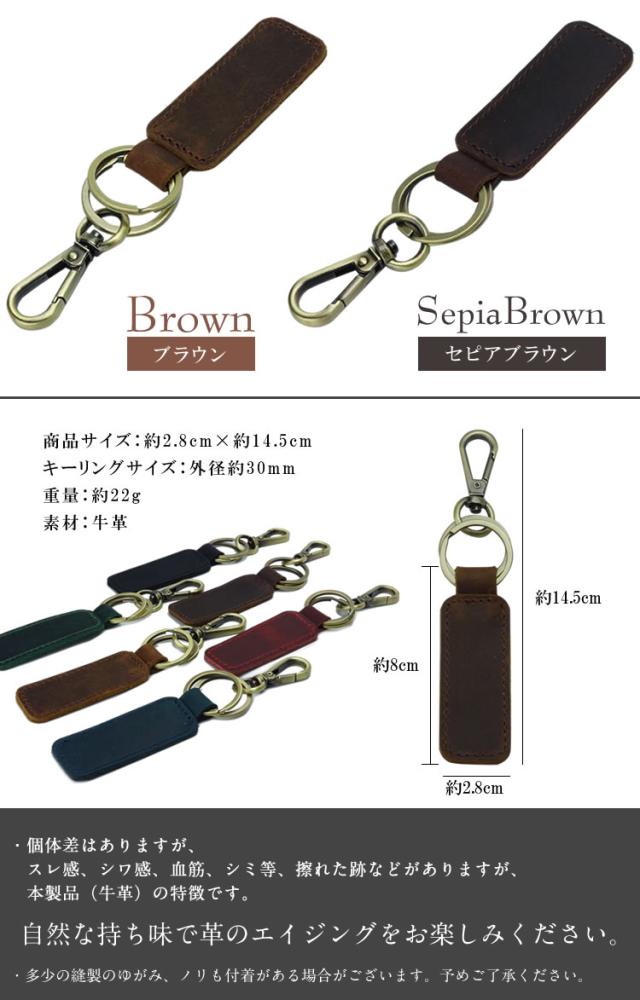 牛革とヴィンテージ調のナスカン・キーリングの金具を