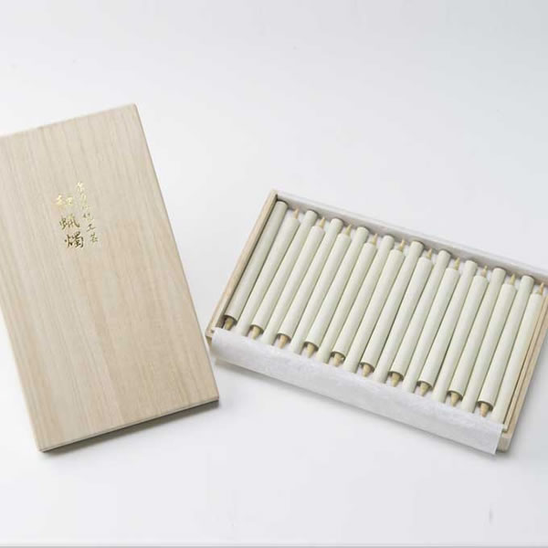 天然植物蝋(はぜ蝋)を原料として伝来の製法で仕上げられた和蝋燭です。