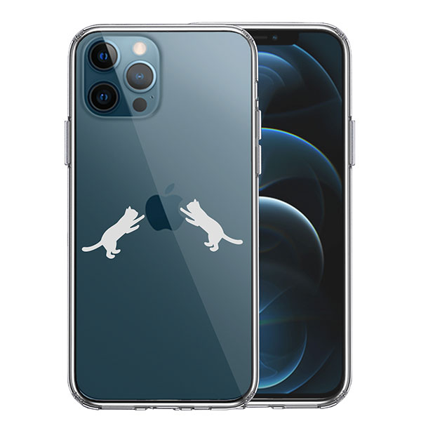 iPhone12 iPhone12Pro ケース ハードケース ハイブリッド クリア にゃんこ りんご 取り合い 薄いグレー カバー アイフォン トゥエルブ トゥエルブプロ アイホンケース スマホケース