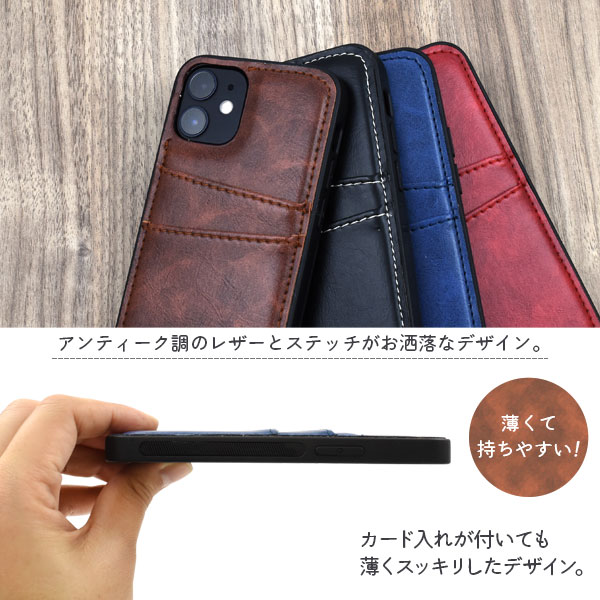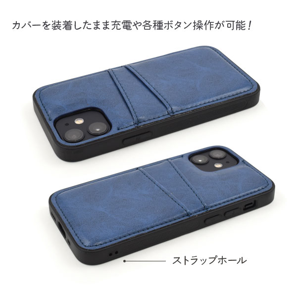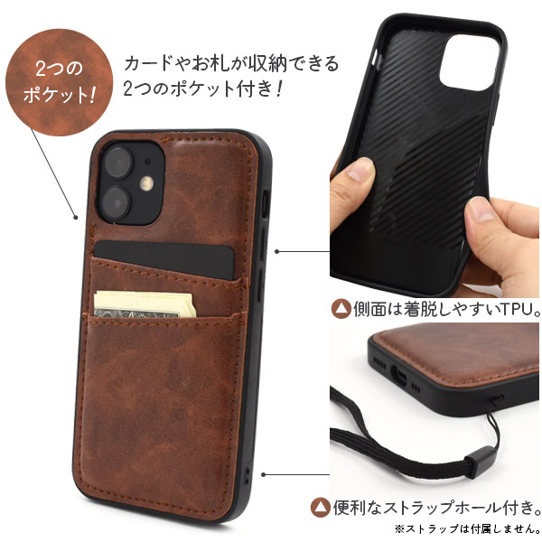 iPhone12mini ケース ハードケース ハイブリッド ポケット付きレザーデザイン カバー アイフォン12ミニ アイフォンケース スマホケース