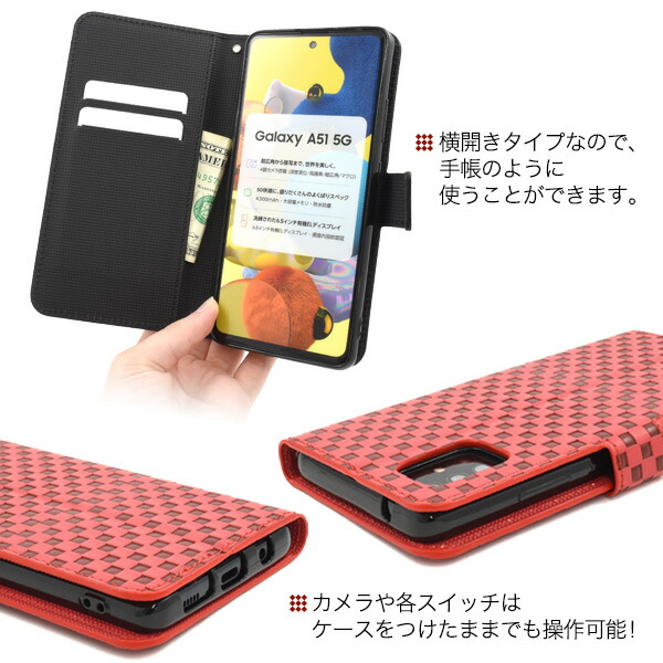 Galaxy A51 5G SC-54A SCG07 ケース 手帳型 市松模様デザイン カバー サムスン ギャラクシー エーフィフティワンファイブジー スマホケース