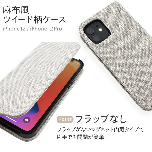 iPhone12 iPhone12Pro ケース 手帳型 麻生地風ツイード柄 アイフォン トゥエルブ トゥエルブプロ カバー アイホンケース スマホケース