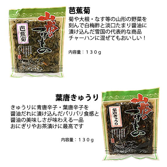 - 山形の漬物、山里のきゅうりと生姜の漬物と芭蕉菊にしました。どちらも当たりでした。とてもおいしい!!もともと生姜が好きで、金賞受賞の山里のきゅうりと生姜もご飯におともに合いますし、芭蕉菊は茄子がいい味と...