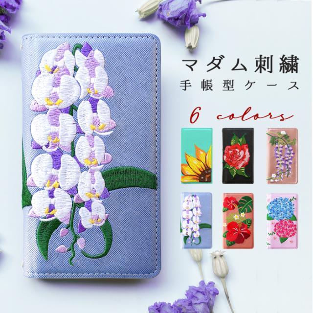 マダム 刺繍 手帳型ケース(内側:黒TPU ケース)